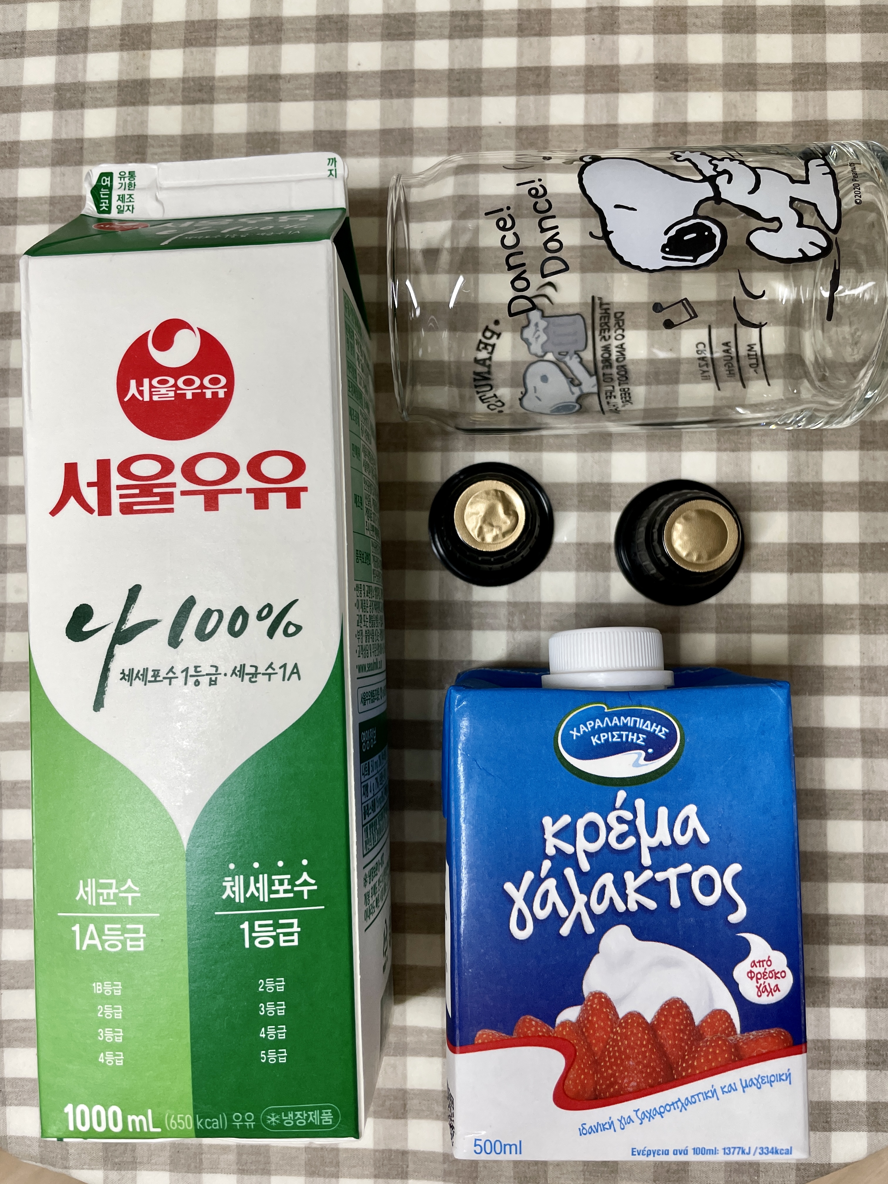 다행히 베이킹하려고 사놓은 휘핑크림이랑 우유가 있었다.